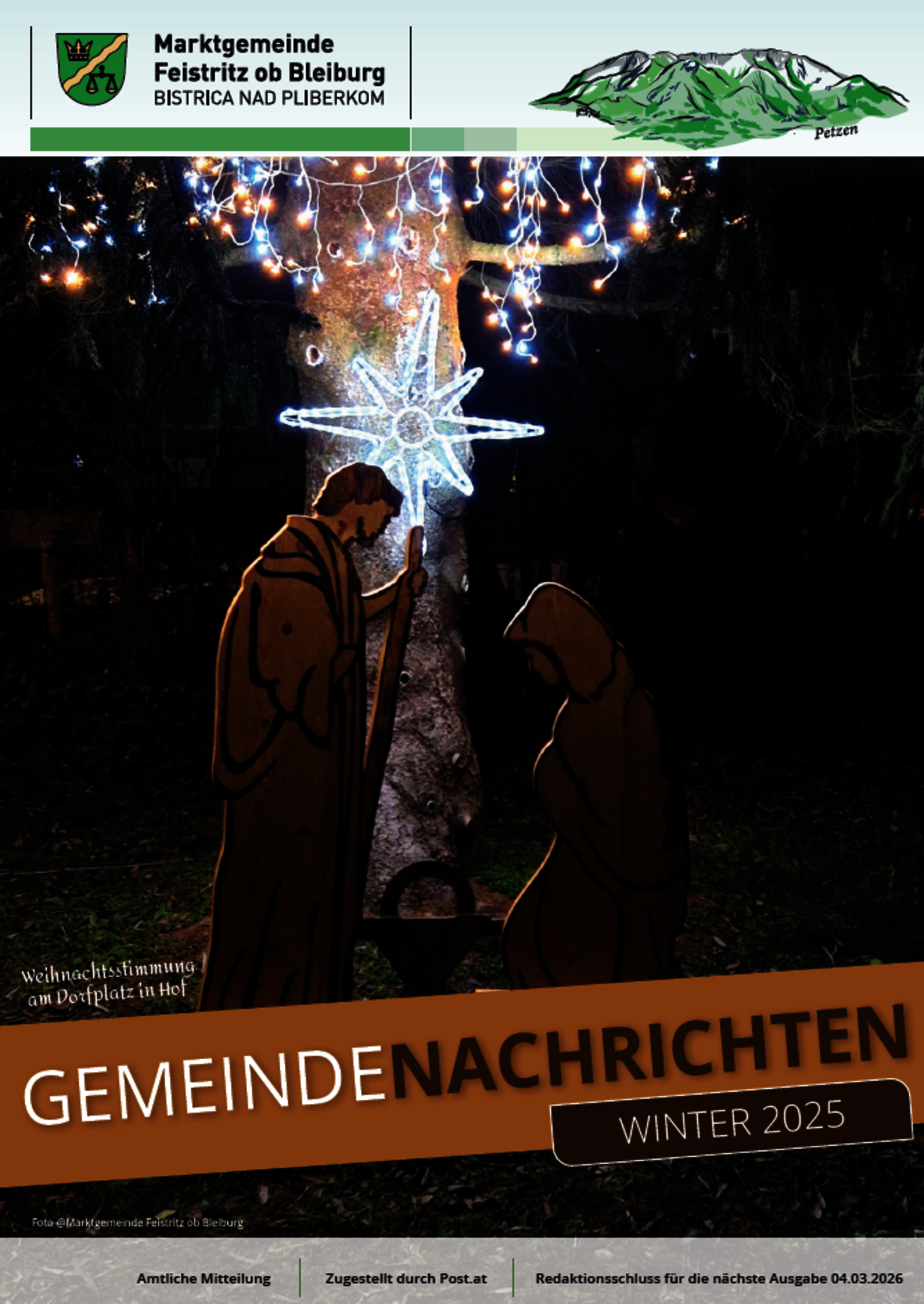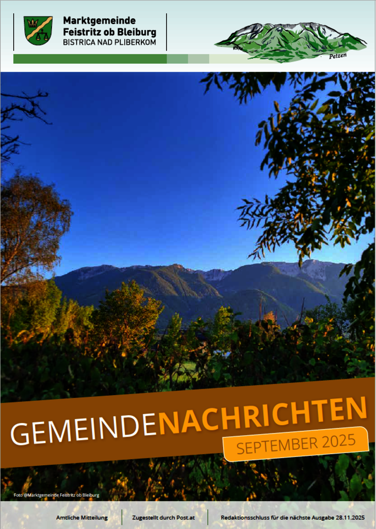 Das Mitteilungsblatt der Marktgemeinde Feistritz ob Bleiburg erscheint vierteljährlich (März, Juni, September und Dezember)