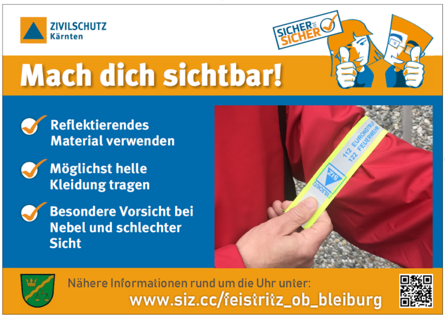 Nebel und schlechte Sicht erhöhen im Herbst und Winter die Unfallgefahren. Für Fußgänger bedeuten diese Witterungsverhältnisse besondere Gefahr. Sehen und gesehen werden ist daher das Um und Auf. Durch das Tragen von sichtbarer, heller Kleidung und Reflektoren kann das Unfallrisiko deutlich gesenkt werden.